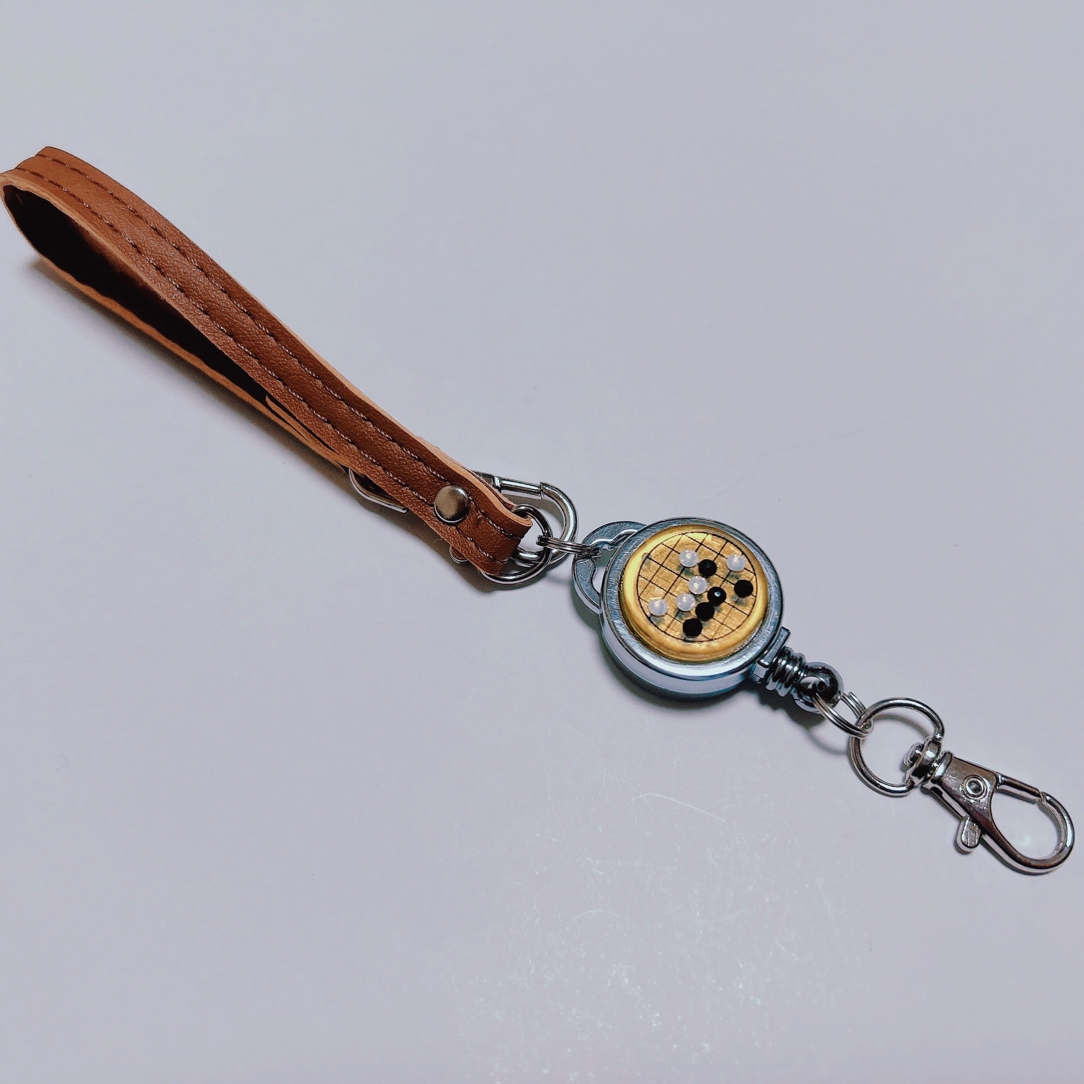 クリアカラー まる碁盤 詰碁 リールキーホルダー 囲碁アクセサリー 囲碁グッズ