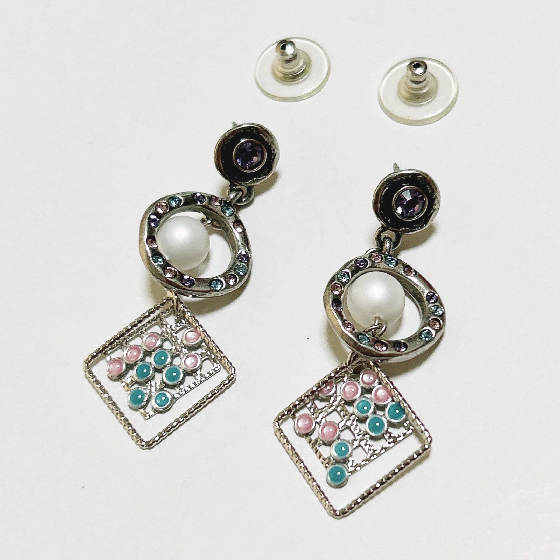 パステルカラーのストーンが綺麗なピアスになります。