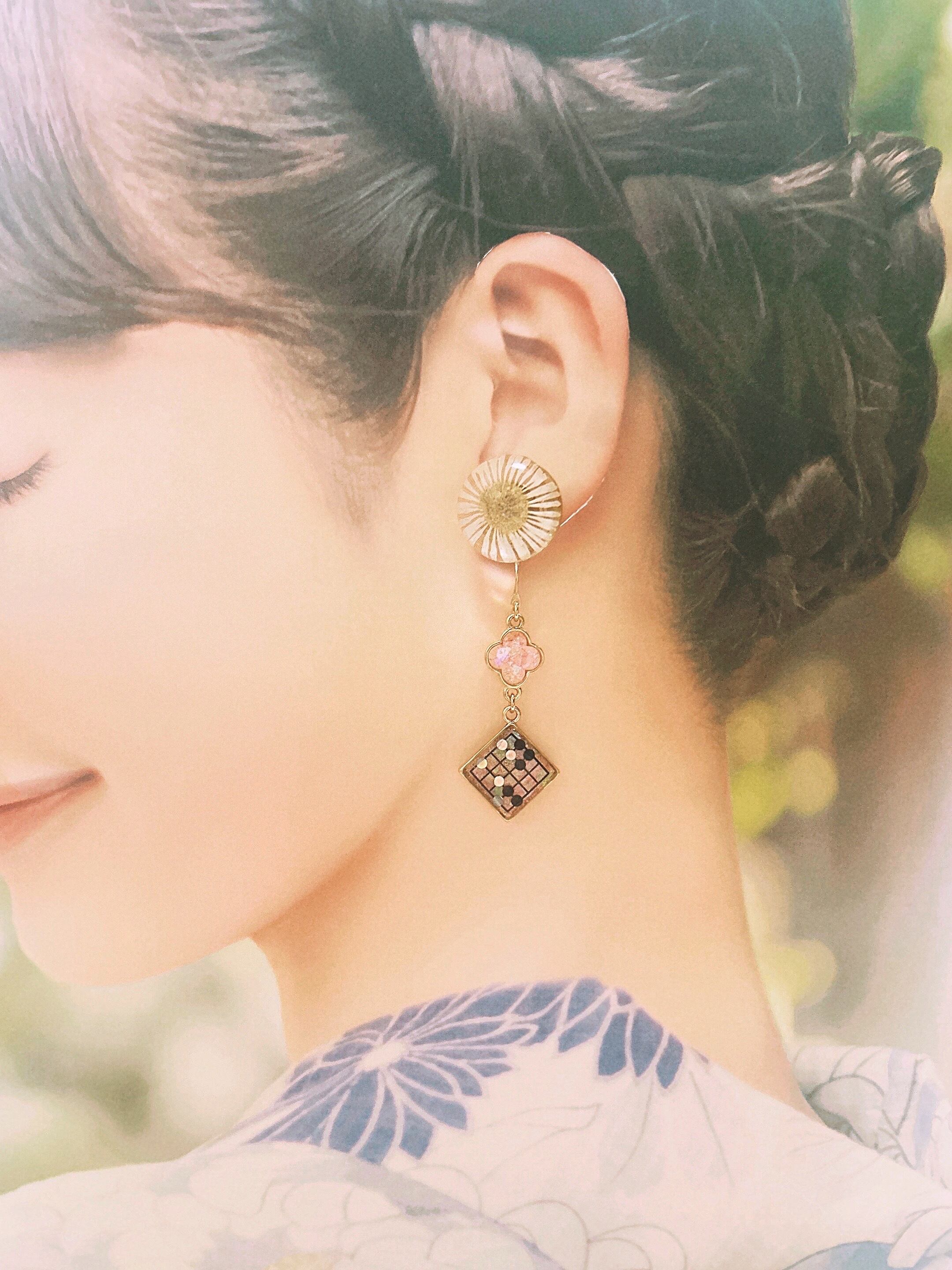 キャッチの方に5路盤がついているので、普通のキャッチの方を付けて頂くとお花のピアスとしても使って頂けます。
